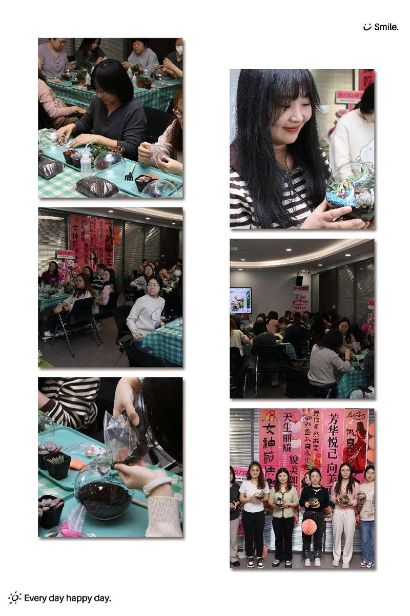 宏亞公司工會組織了“柔光萬丈,自在生長”微景觀DIY主題活動,女職工們用靈巧的雙手將方寸玻璃瓶化作詩意天地,有人打造出“苔痕上階綠”的古典庭院,有人構思出“小橋流水人家”的田園牧歌,活動現場歡聲笑語不斷,大家在綠意盎然的創意世界中感受春日美好,共度溫馨時光。